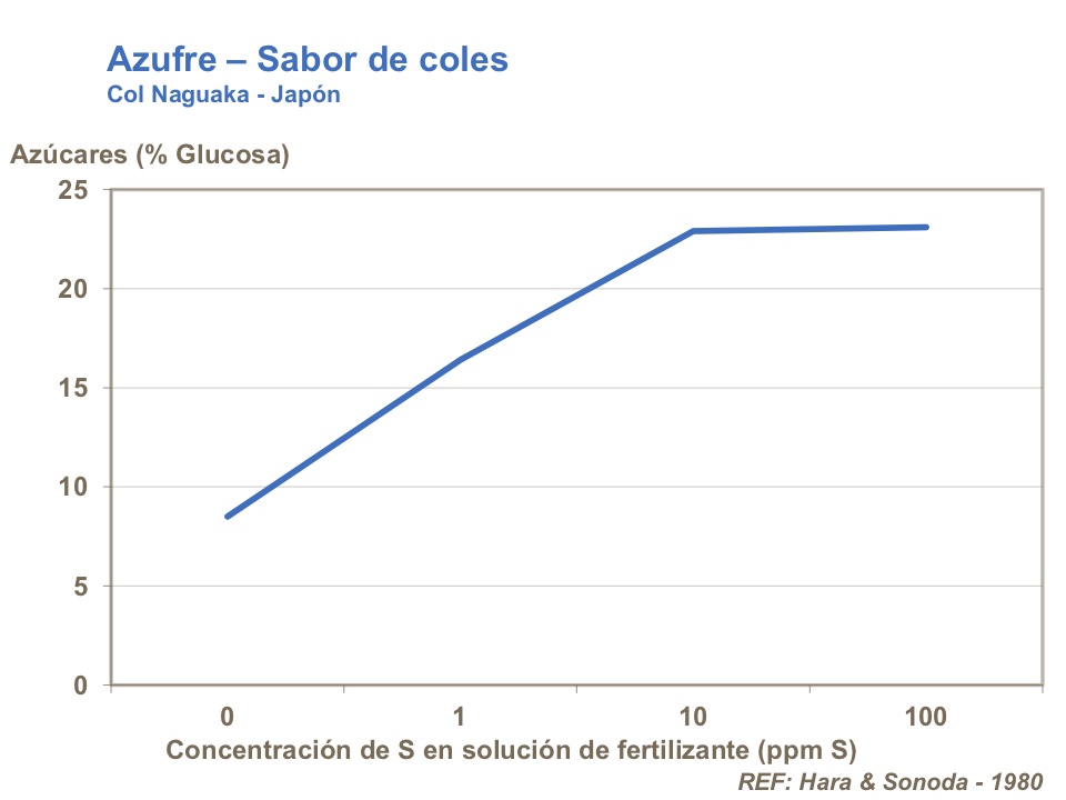 El azufre es necesario en las brassicas para tener coles más dulces, con mejores características para la indústria y mejores propiedades para la salud humana. Buena nutrición de azufre lleva a coles más dulces.