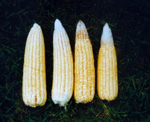 Las mazorcas se estrechan y terminan en punta, la parte superior tiene pocos granos llenos.