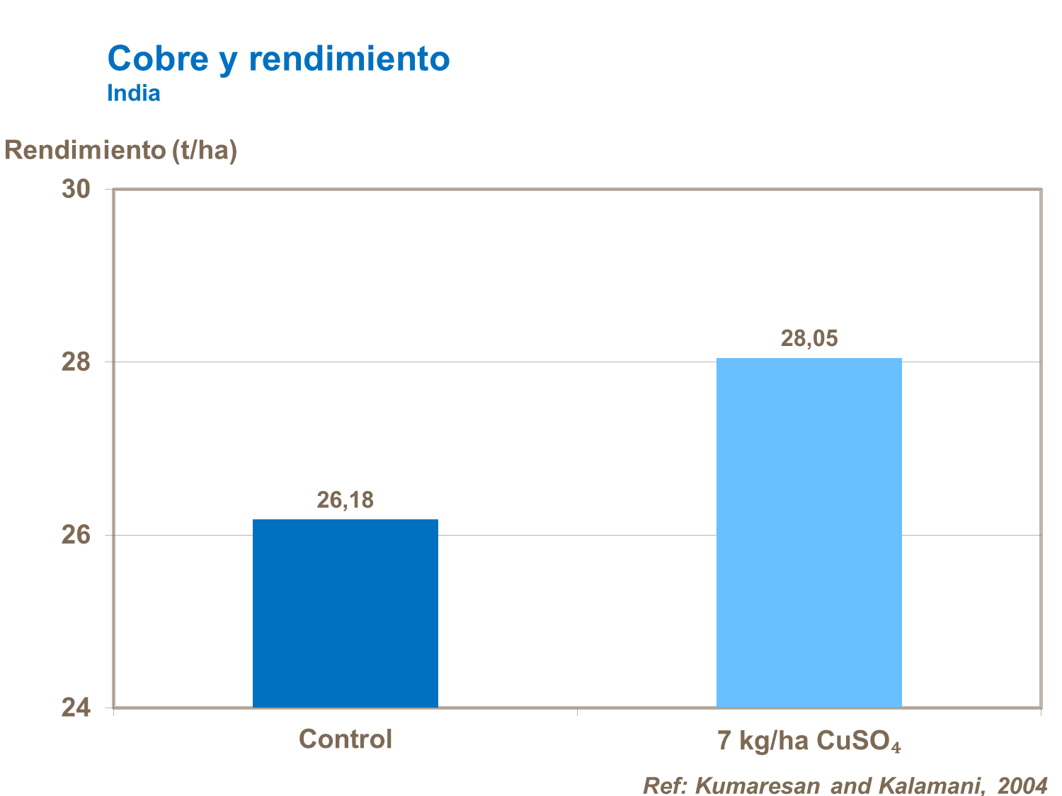 La deficiencia de cobre es muy escasa en cultivos de invernadero. En el campo, es más probable que ocurran en suelos arenosos u orgánicos. Las aplicaciones de fondo con sulfato de cobre en suelos deficientes incrementan la producción y la calidad del producto.