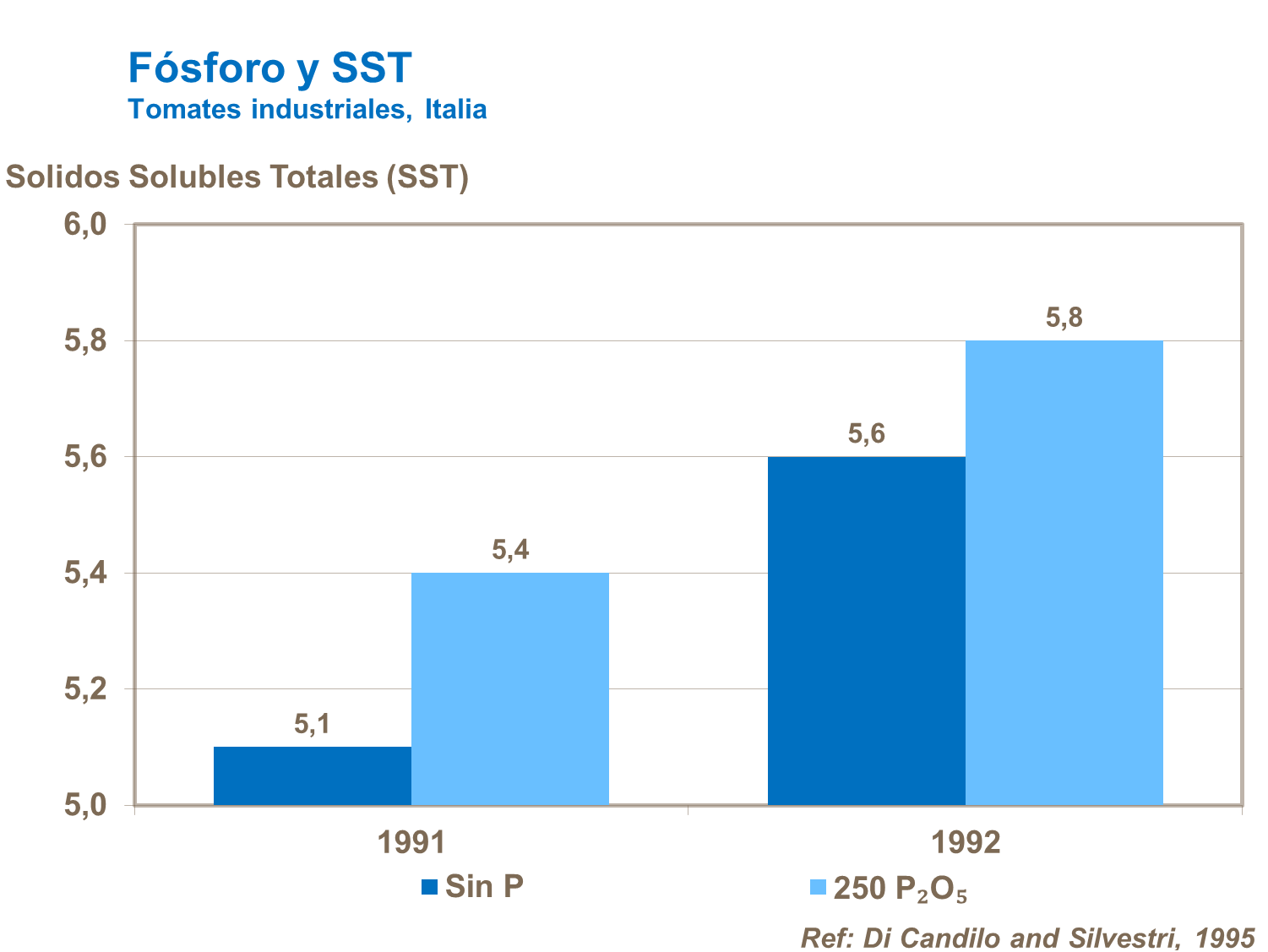 El fósforo asegura un aumento significativo de SST, mejorando las cualidades de los tomates para ser procesados.