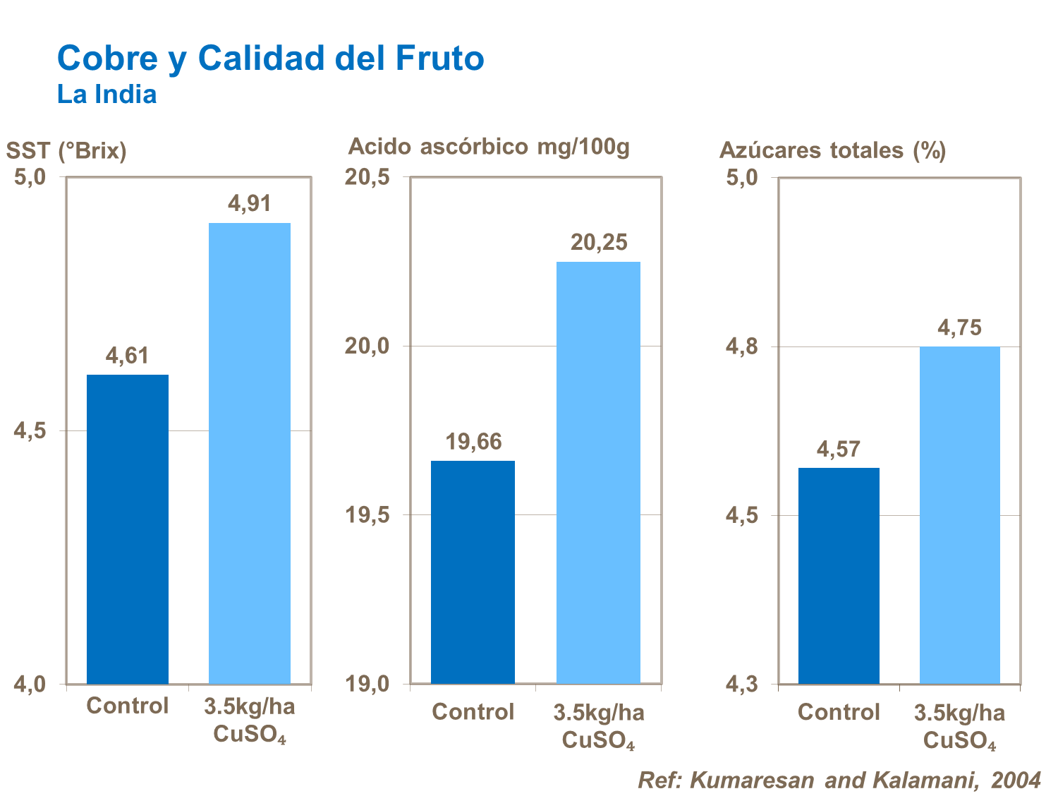 Las aplicaciones de cobre en suelos que presentan carencia, mejorarán la calidad del fruto.