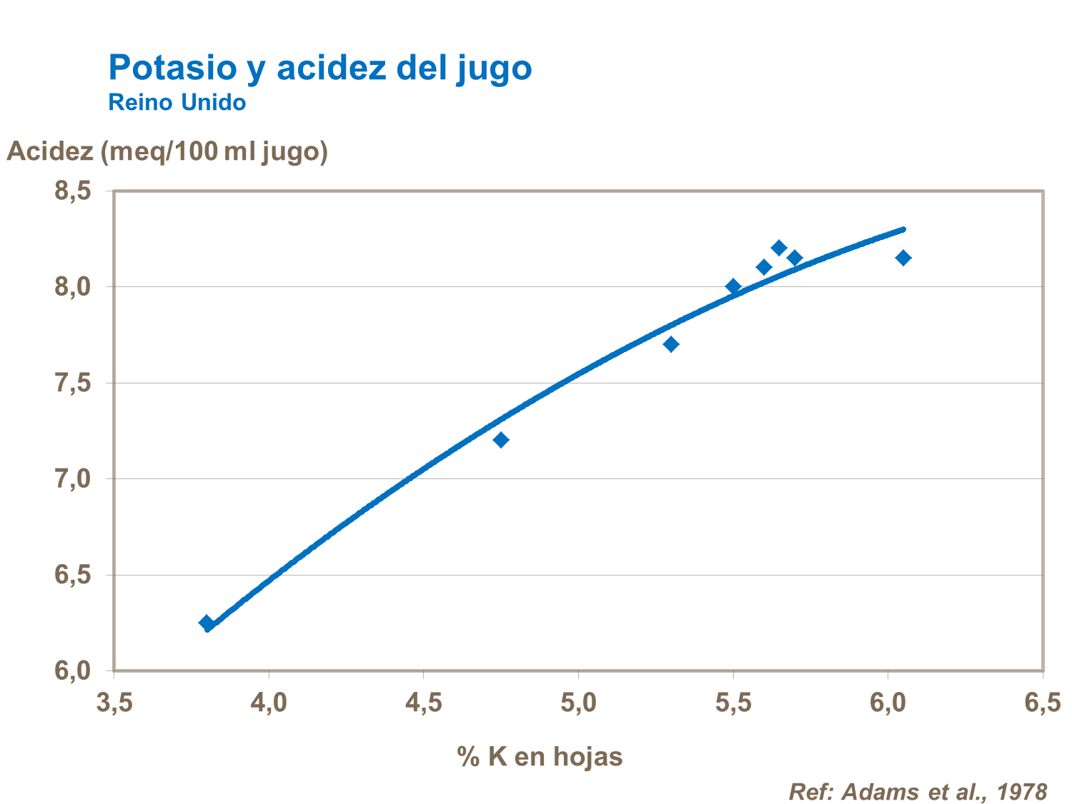 Los niveles más altos de potasio en la planta aumentan la acidez del fruto y del jugo resultante.